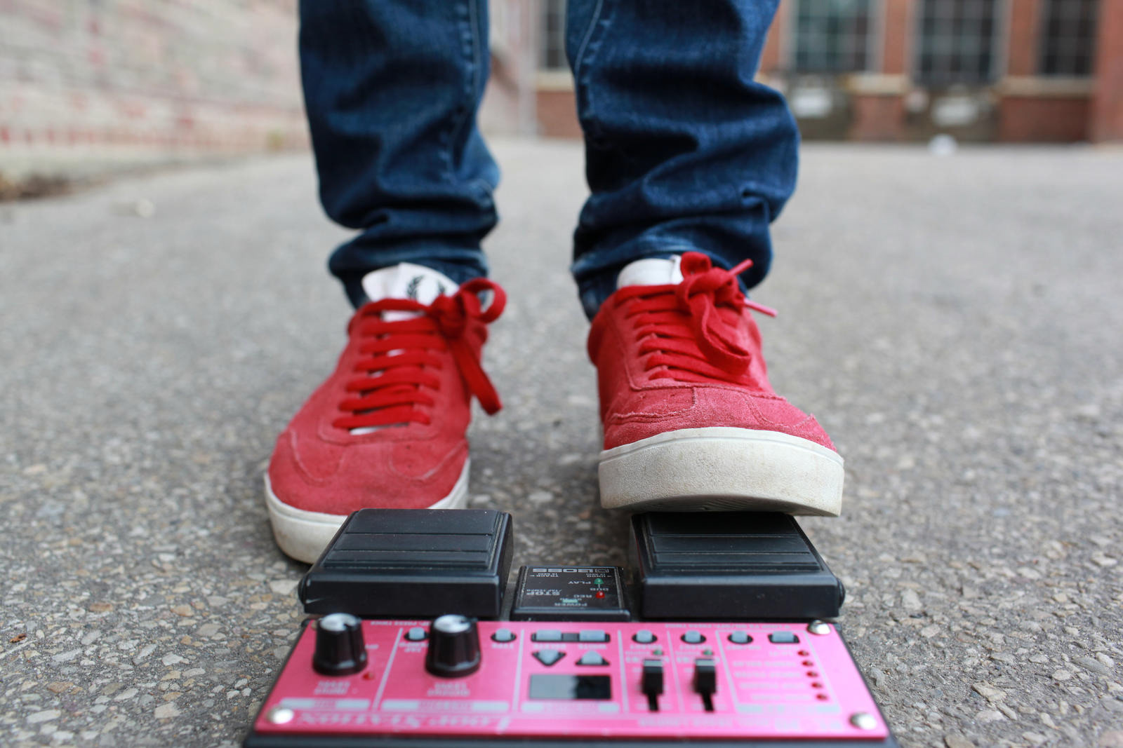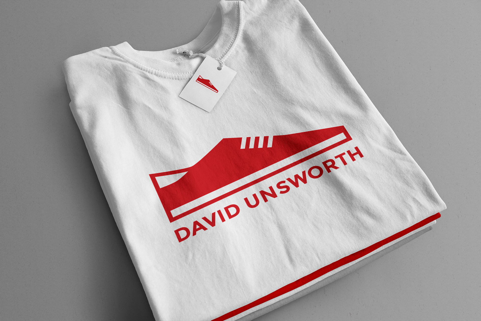 The logo is an echo of the signature red shoes that musician, David Unsworth, wears when he performs.